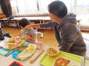 陶芸教室の後は、親子で給食を食べました。いつも以上においしく、楽しい会食をすることができました。