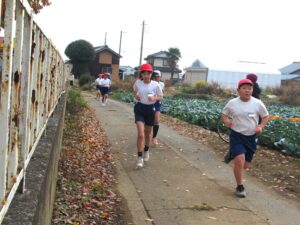 秋晴れの空の下、校内持久走大会が実施されました。校庭と近隣の道路がコースとなっており、たくさんの保護者や地域の方々に、応援やコース誘導のボランティアとしてお越しいただきました。寒い中本当にありがとうございました。
