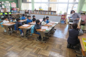 朝の時間に、朗読ボランティア「すばる」の方々による読み聞かせが行われました。