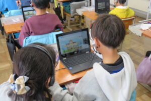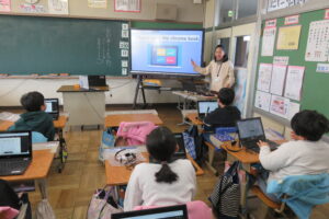3年生は欲しいものの名前について、4年生は校舎内の教室の名前について英語で会話しました。ジェスチャーを交えながら、元気に会話をしている児童もいます。これからも経験を重ね、英会話のスキルを身に付けてもらいたいと思います。