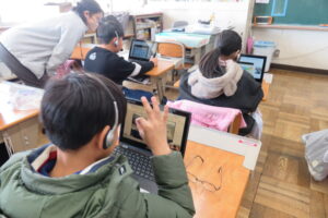 3・4年生の本年度最終回のオンライン英会話が実施されました。フィリピン在住の方たちと1対1での対面式の授業でした。