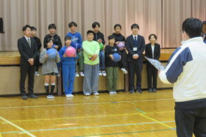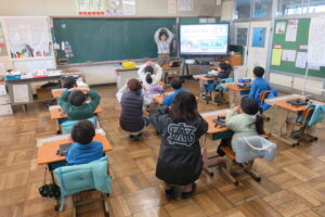 1年生は色の名前について、2年生は果物や食べ物の名前について、ジェスチャーも交えながら英語で会話しました。新学年になっても経験を重ね、英語に楽しく親しんでもらいたいと思います。