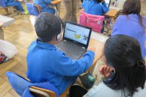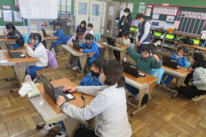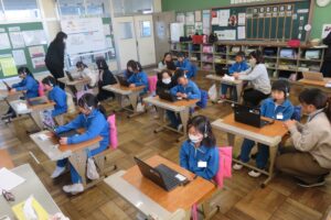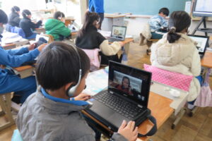 1・2年生の本年度初回(最初で最後)のオンライン英会話が実施されました。フィリピン在住の方たちと1対1での対面式の授業でした。