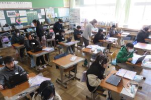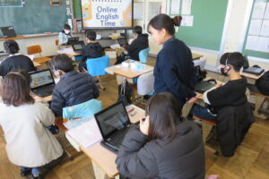 高学年は本年度10回目のオンライン英会話。5年生は尊敬する人物とその理由について、6年生は中学校で入りたい部活動とその理由について英会話を行いました。高学年は、1時間の授業の中で会話の相手が入れ替わります。初対面の方と会話によるコミュニケーション力を高めるよい機会になっています。