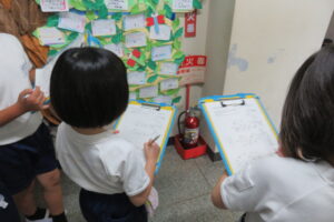 3年防火設備確認(9.25) 2025年9月26日 最終更新日時 : 2025年9月26日 shizuka 3年生の社会科の学習で、校内の防火設備の確認を行いました。熱感知器、防火扉、消火器、消火栓などの場所や数を確認しました。普段使っている校舎で新たな発見があり、子どもたちは目を輝かせて学習していました。 アクセスカウンター 106