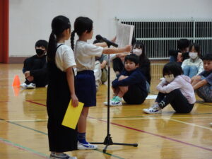 2年生と4年生の代表児童が、前期の振り返りと後期の目標を立派に発表しました。