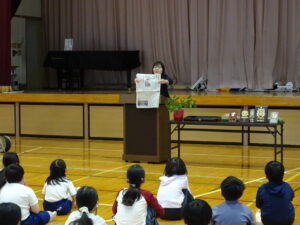 校長先生からは、ノーベル賞受賞のニュースから、夢をもち続けること、自分の可能性を信じあきらめないことの大切さについてお話がありました。