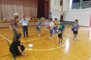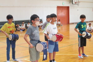 静小まつりでの発表に向けて、地元の保存会の方々による指導のもと、「塚崎の獅子舞」の練習が行われました。