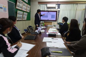 放課後には教職員の研究協議が行われ、より確かな学力をつけるための授業を展開するために、様々な視点から忌憚のない意見が出されました。指導主事からのご指導もいただきました。今後もよりよい授業づくりのための研鑽を続けてまいります。