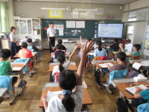 1・2年生の授業の様子です。1年生は音楽で、「メリーさんの羊」を鍵盤ハーモニカで演奏しました。2年生は体育で、フラフープを転がして相手チームに当てるゲームをしました。みんな上手にフラフープを転がしたり、それをよけたりしま […]